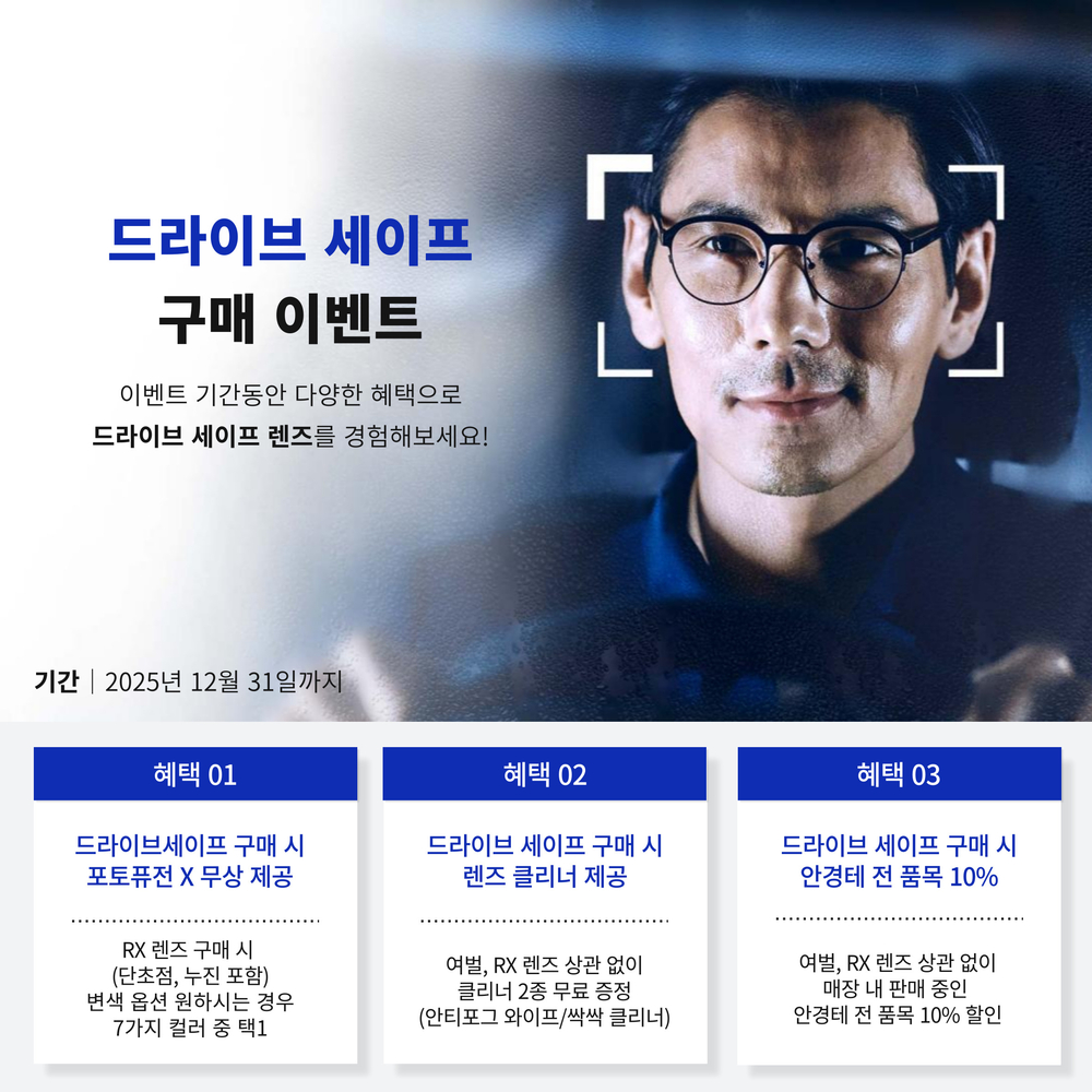 눈부심 없는 편안함 밤 운전과 일상까지 선명해지는 자이스 드라이브세이프를 아래의 다양한 혜택과 함께 경험하실 수 있습니다.